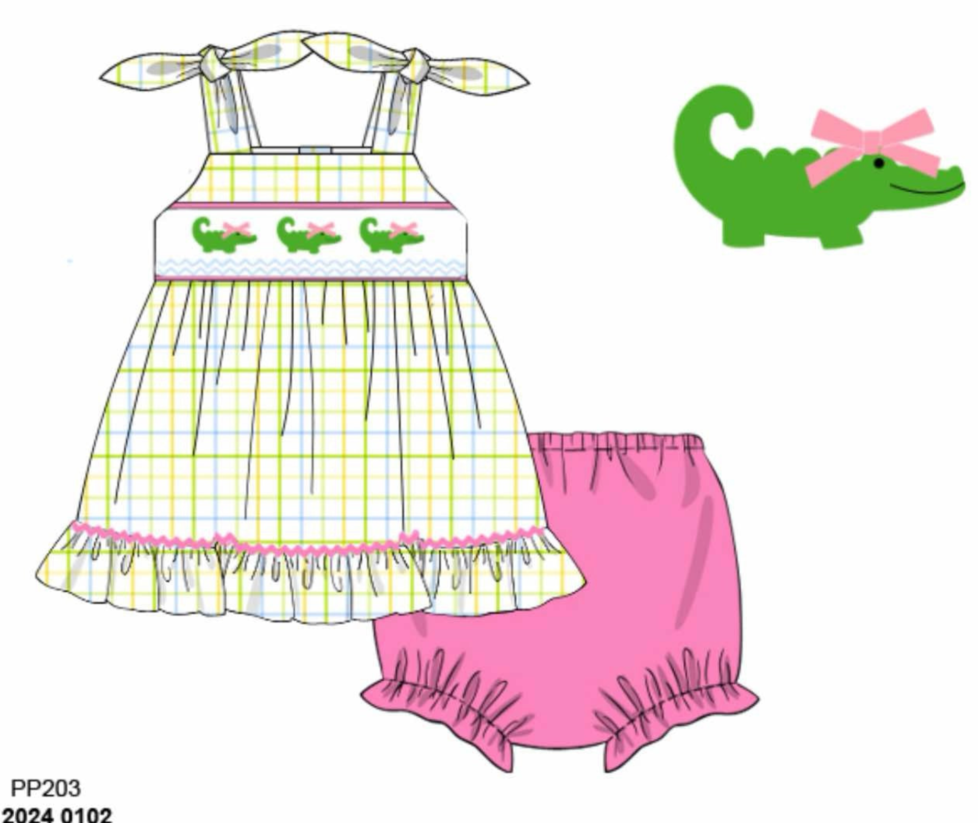 RTS: DEFECT- Lator Gator- Girls Knit Bloomer Set