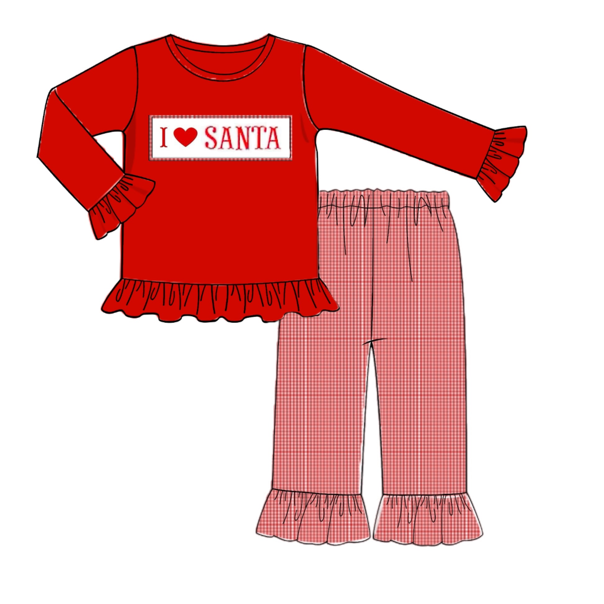RTS: Girls Red "I ❤️ Santa" Woven Pant Set