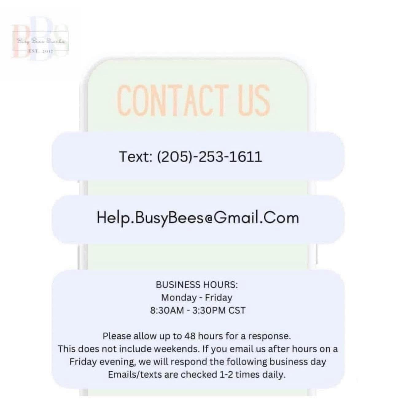 Please reach out to customer service if you have any further questions. Emails texts are answered Monday-Friday in order from oldest to newest. Each additional inquiry sent will send you back to the top of the queue. Please only send one email OR one text. We ask for at least 48 business hours for a response, though much inquiries are responded to much sooner.